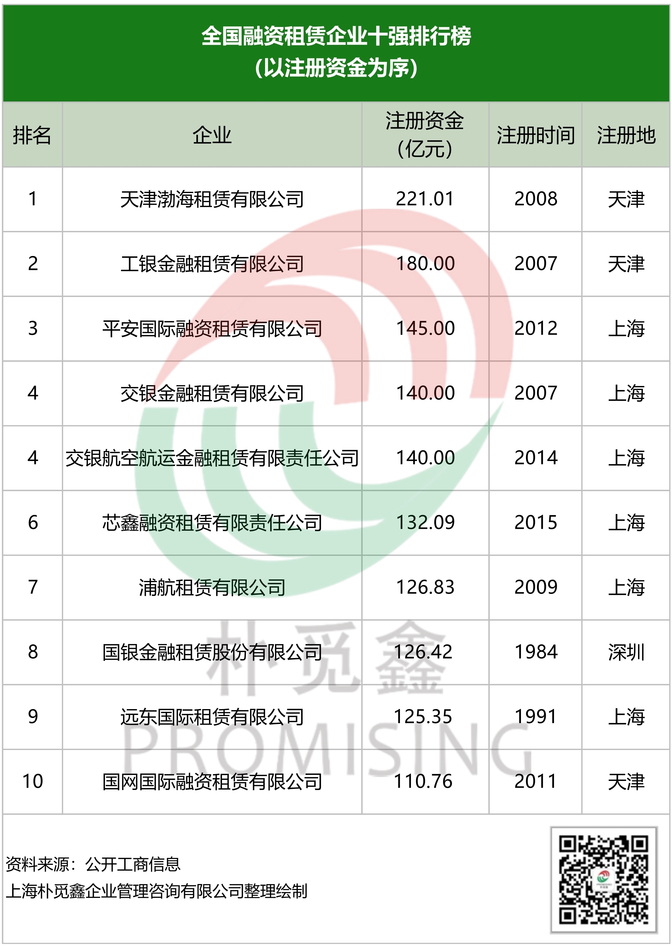 樸覓鑫統計,更新了融資租賃公司前十強榜單,名單如下: