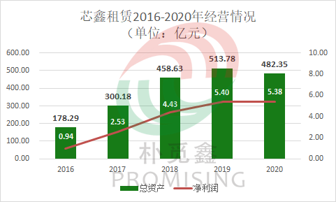 2018年9月10日,芯鑫租賃入股芯鑫深圳,至此,芯鑫深圳正式成為芯鑫租賃控股子公司。截止到2020年末,芯鑫深圳總資產12.68億,總負債8.32億;2020年度營業收入0.55億,凈利潤0.18億元。