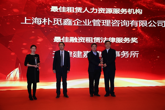 2018年12月18日晚,由中國行業規格最高、影響力最深遠的中國租賃年會舉辦的年度企業評選頒獎典禮在天津隆重召開。上海樸覓鑫企業管理咨詢有限公司榮獲行業首個“最佳租賃人力資源服務機構”稱號,成為眾望所歸的租賃人力資源服務領域翹楚,總經理傅文豪先生親自出席并登臺領獎。